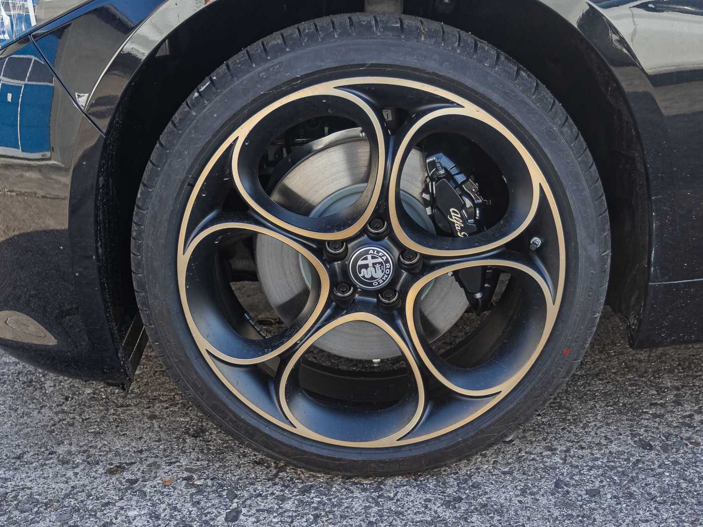- BREMBO® Bremsanlage mit schwarz lackierte Bremssättel und goldfarbenen Alfa Romeo Schriftzug