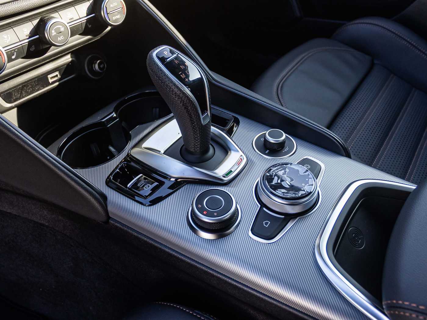 - Schalthebel im Sport-Design mit perforiertes Leder