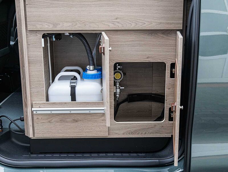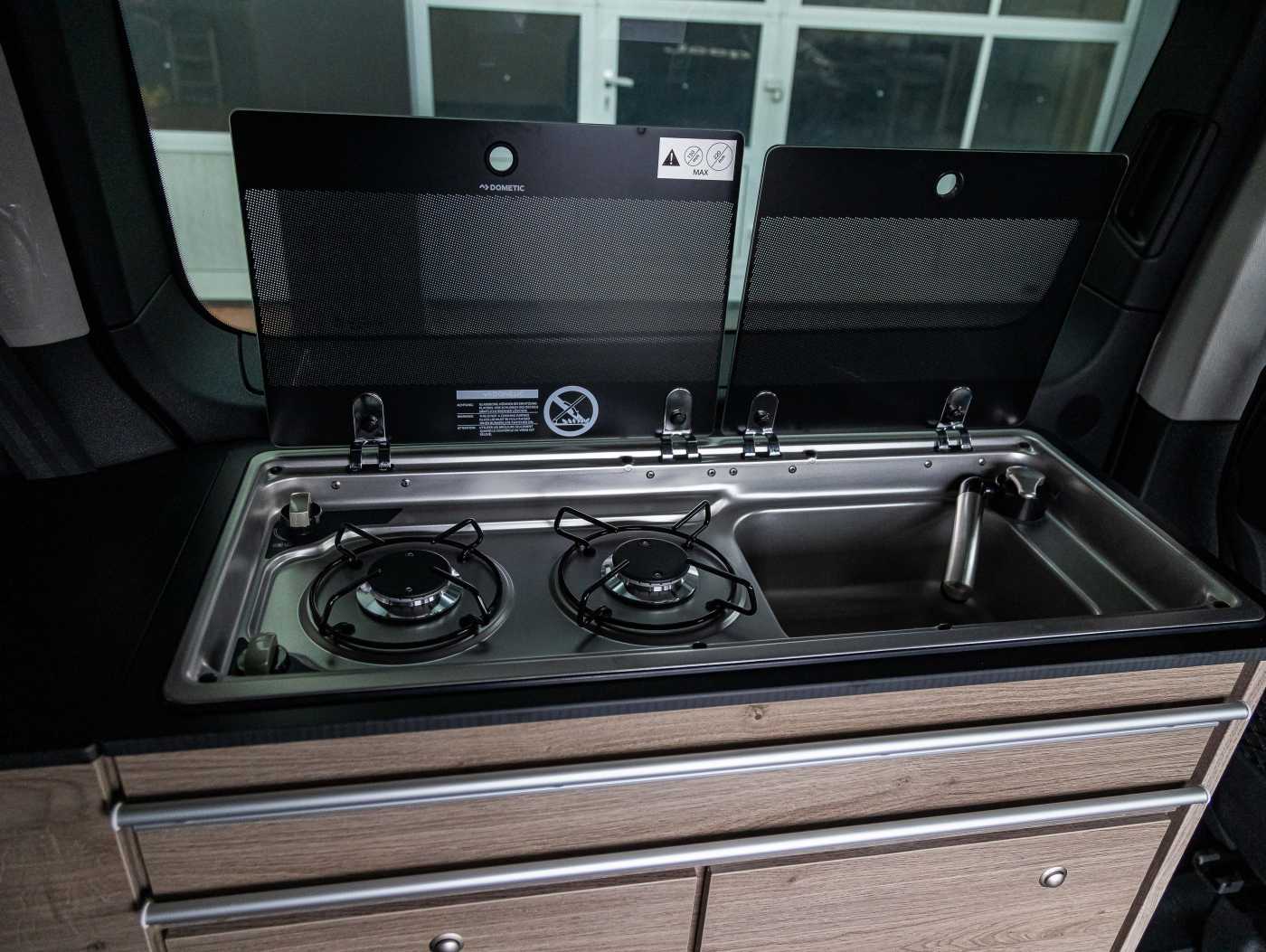 • Küchenzeile mit Spüle und Kochstelle fixiert