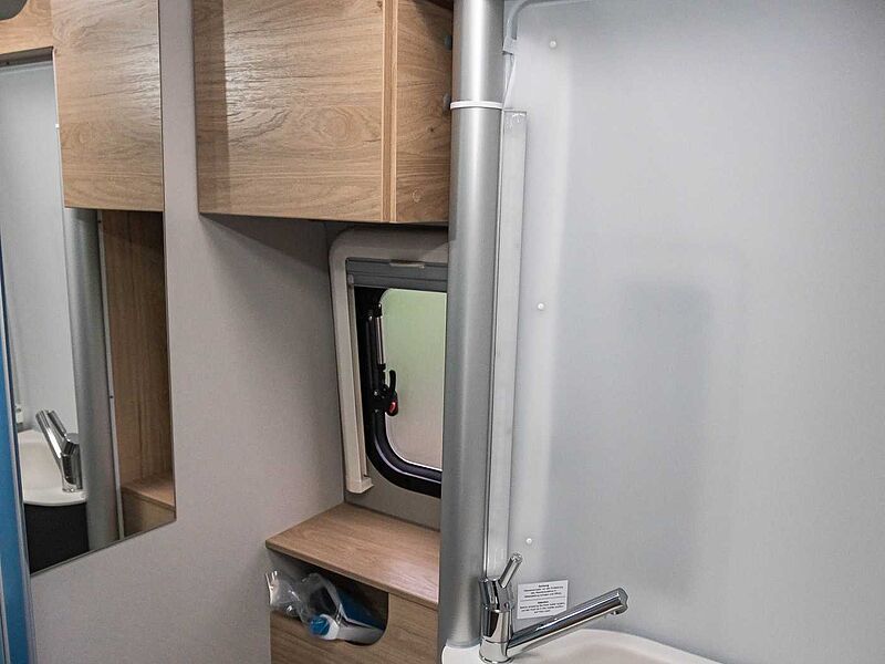 Komfort Paket (600 DK / DS / DR) (Fenster mit Fliegenschutz und Verdunklungsrollo im Heck links, Innovativer Auszug unter dem Heckbett, Drehplatte für Tischerweiterung)