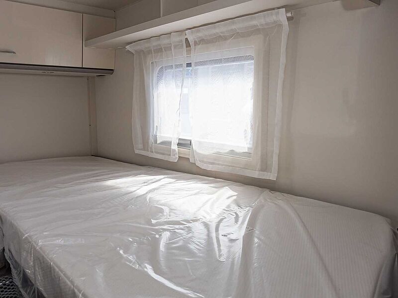 Liegekomfort • Matratzenbezüge abnehmbar und waschbar • Bettenumbau Einzelbett zu Doppelbett • Holzlattenrost in allen Festbetten für erhöhten Liegekomfort • Großzügige Stauräume und Ablagemöglichkeiten • Dachstauschränke mit Soft-Close Schließsystem • Möbeldekor Tela Sand and White • Fußboden Nautic Breeze • Isofix Kindersitzbefestigung für Couch-Couch Sitzgruppe ( T 7.3 SCF | QCF)