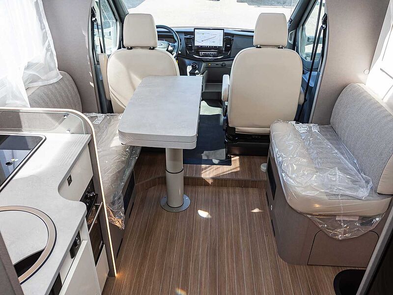 Rahmenfenster Multimediapaket: Navigationssystem mit Rückfahrkamera Solarvorbereitung 3.500 KG Chassis 16' Alufelgen Fenster in T-Haube 2. Aussenstauraumklappe Bettenumbau Einzelbett zu Doppelbett Abwassertank isoliert Design Applikation Heck Komfort Paket Teilintegriert (Panoramadachhaube über Küche, Klarglasdachhaube 40x40, Duschraumverkleidung, Spiegel mit indirekter Beleuchtung und Garderobenhaken, Holzlattenrost in der Dusche, Captain Chairs inkl. Wohnraumbezüge, zusätzl. Steckdose im Dachschrank über dem Küchenblock, Steckdose in der Garage) Chassis - Paket (Klimaanlage inkl. Staub- und Pollenfilter, Scheinwerfer mit statischem Abbiegelicht, Stoßfänger vorn in Wagenfarbe inkl. Nebelscheinwerfer, Seitenschutzleisten in Wagenfarbe lackiert, elektrisch und beheizte Außenspiegel (nur mit Radstand 3300 bzw. 3750 ), Lederlenkrad, Handschuhfach mit Deckel) type X (Dachschrankklappen in Hochglanz Magnolia, Wohnwelt Emilia mit type X Bestickung, type X Abklebung innen und außen )
