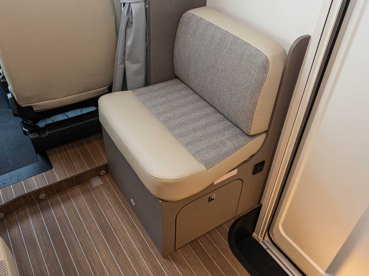 Liegekomfort • Matratzenbezüge abnehmbar und waschbar • Bettenumbau Einzelbett zu Doppelbett • Holzlattenrost in allen Festbetten für erhöhten Liegekomfort • Großzügige Stauräume und Ablagemöglichkeiten • Dachstauschränke mit Soft-Close Schließsystem • Möbeldekor Tela Sand and White • Fußboden Nautic Breeze • Isofix Kindersitzbefestigung für Couch-Couch Sitzgruppe ( T 7.3 SCF | QCF)