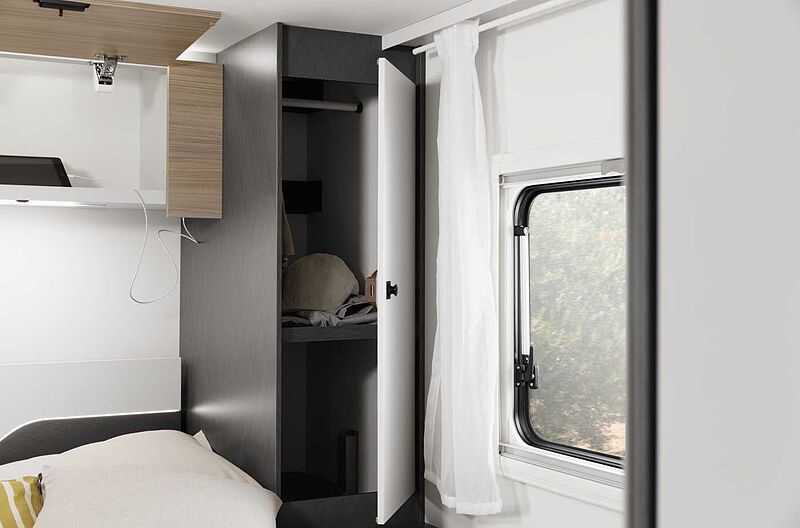 AUFBAU • 7 Jahre Dichtigkeitsgarantie * • Dach- und Heckaußenhaut aus widerstandsfähigem GFK • Dach- und Wandstärke 34 mm, Fußbodenstärke 41 mm • Seitenwandaußenhaut aus Aluminium-Glattblech • Formschöner Heckleuchtenträger dreiteilig mit integrierten Leuchten • Hochwertige Aufbautür mit Fenster und Ablagefächer sowie einer ergonomischen Griffposition innen und außen (außer Van) • Fliegengittertür (einteilig) • Ausstellfenster doppeltverglast mit Verdunkelungsrollo und Fliegenschutz (ausgenommen Toilettenraumfenster) • Dachhaube in Milchplexiglas mit Fliegenschutz • Elektrische Trittstufe • Großzügige Heckgarage mit Rahmenabsenkung, Antirutschfläche, Sicherungsösen und Innenbeleuchtung (modellabhängig) • Zuladung Heckgarage bis zu 150 kg