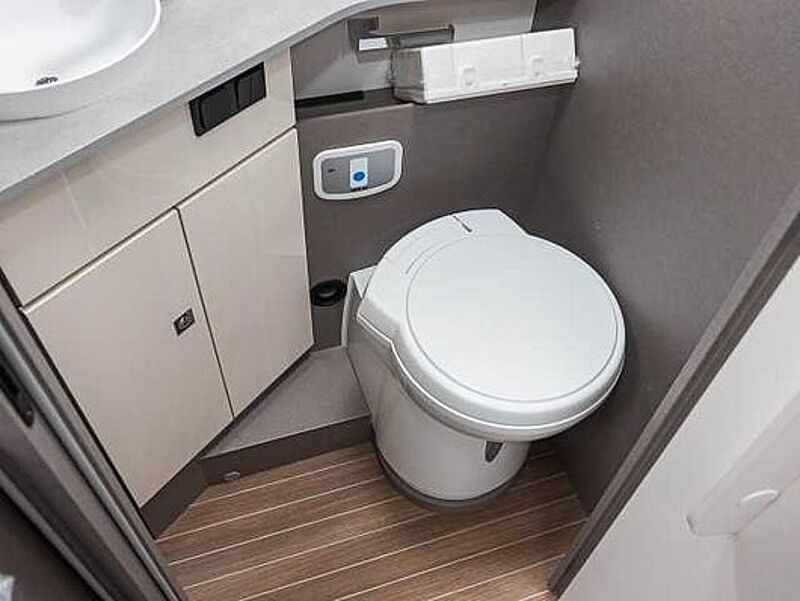 BAD • Variobad im T 6900 SB, T 7300 SB, V5900 DB & V6600 SB • Geräumiges Raumbad mit gegenüberliegender separater Dusche im T 6900 DB/QB, T 7400 SB/QB/QBC/SBC • Bad mit Banktoilette und integriertem Duschraum im T 5900 FB • Kassettentoilette mit elektrischer Pumpe und drehbarem Sitz (außer T 5900 FB) • Dachhaube mit integriertem Insektenschutzrollo (modellabhängig) • Große Spiegelflächen • Kleiderstange in der Nasszelle • Flex-Schienensystem mit 2 Haken (außer T 6900 SB, T 7300 SB, A 6600 BB und A 7300 DB)