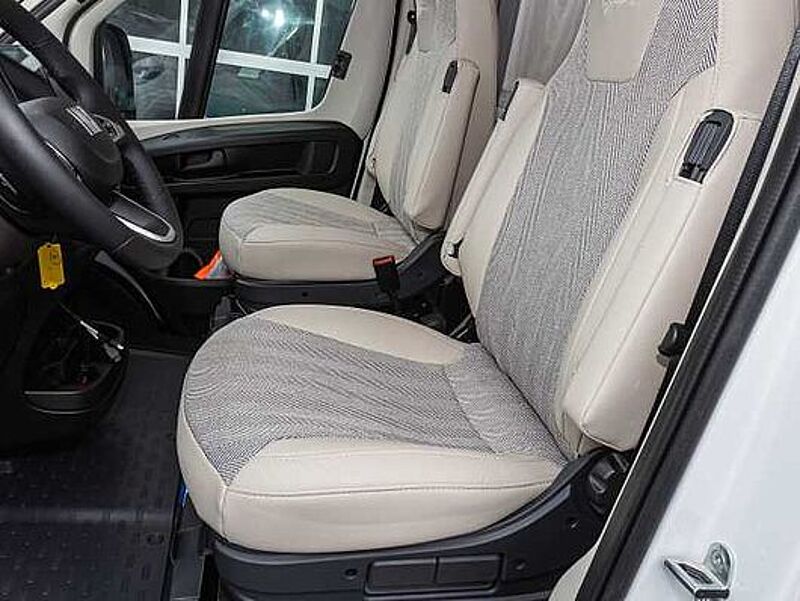 FAHRGESTELL / BASISFAHRZEUG • Fiat Ducato, 2,3 Multi-Jet mit 104 kW / 140 PS, Multijet-Direkteinspritzung, Abgasnorm EURO 6 • Dieseltank 75 ltr. • Breitspurfahrwerk • Frontantrieb • Tagfahrlicht im Serienschweinwerfer integriert • Fahrerairbag • ABS, EBD, ESP inkl. ASR und Hillholder • Scheibenbremsen, Umluftheizung, Drehzahlmesser, Servolenkung, Wegfahrsperre, 3-Punkt-Sicherheitsgurt • Elektrische Fensterheber und Zentralverriegelung im Fahrerhaus bei Teilintegrierten • Frontstoßfänger in Wagenfarbe lackiert • Pannen-Set Fix & Go Kit • Getränkehalter in der Mittelkonsole • Komfortable Fahreigenschaften durch Hinter- und Vorderachs-Stabilisatoren • Stahlfelgen 15“ inkl. Radzierblenden • Tabletholder und USB-Steckdose • Fahrer-/Beifahrersitz in Wohnraumstoff mit Doppelarmlehnen • Fahrer-/Beifahrersitz bei T-Modellen drehbar • Höhen- und Neigungsverstellung für Fahrersitz (für Beifahrersitz optional)
