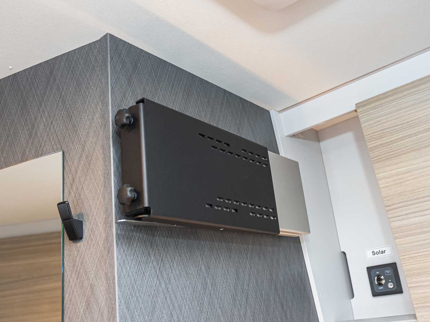 • CEE-Außenanschluss für 230 V mit Sicherungsautomat • FI-Schutzschalter • USB-Steckdosen