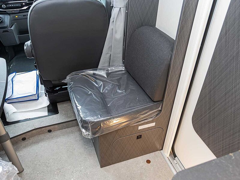 • Ausstellfenster doppeltverglast mit Verdunkelungsrollo und Fliegenschutz • Fahrerhaus-Vorhang • Aufbautür mit ergonomischer Griffposition innen und außen • Fliegengittertür • Elektrische Trittstufe