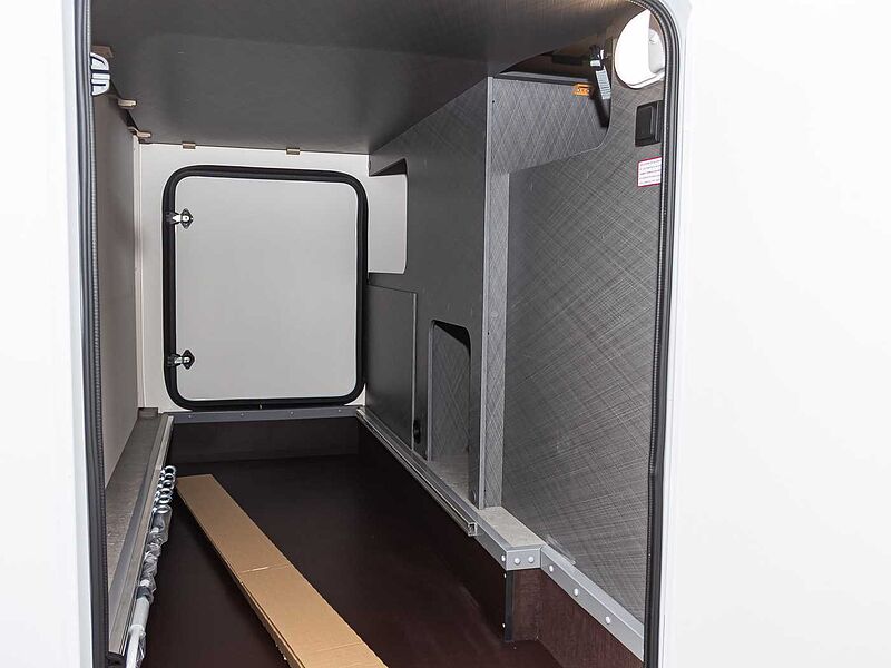 • Formschöner Heckleuchtenträger dreiteilig mit integrierten Leuchten • Großzügige Heckgarage mit Verzurrösen und Innenbeleuchtung • 2. Außenstauraumklappe (Größe modellabhängig) • Zuladung Heckgarage bis zu 150 kg