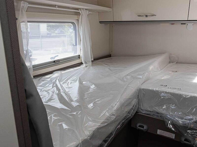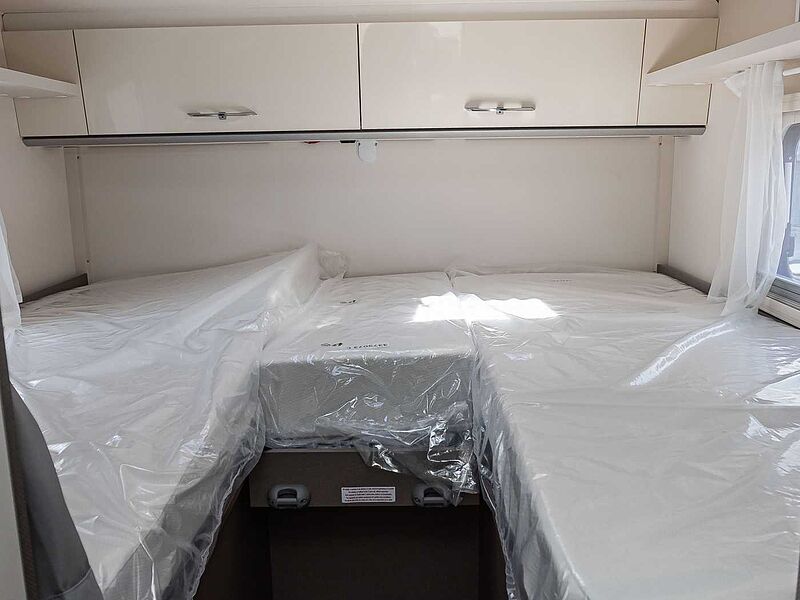 und Glasabdeckung • Geräumige Schubkästen mit Soft-Close im Küchenblock • Kühlschrank 78 l mit Gefrierfach 11 l • Frischwassertankkapazität 110l, Abwassertank 100l (V 5.9 DF: 95l) • Abfalleime