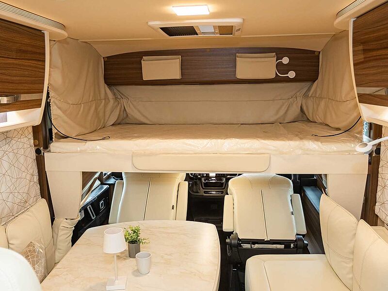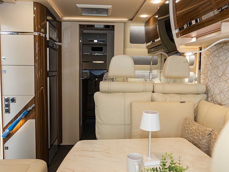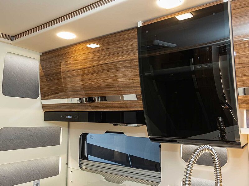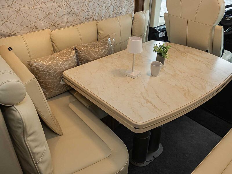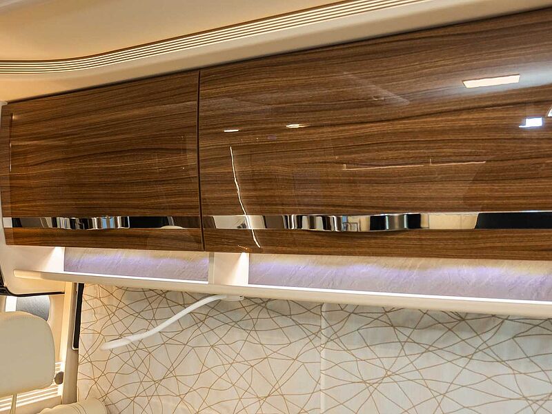 Möbeldekor "Navarra" - Luminary-Paket Integra 890 (Komfortsitze Fahrerhaus (Integra), Navigationssystem, Doppelaugen-Rückfahrkamera, Lenkradbedienelemente, Vorverkabelung für Solaranlage, Fahrerhausteppich, Automatikgetriebe, 16 Alu-Felgen, Außendesign in Carbon, Chromelemente Front & Heck, LED-Abbiegelicht, LED-Nebelscheinwerfer, TV-Auszug Front, TV-Wandhalterung Heck, Ordnungssystem für Heckgarage, Soundsystem, Klimaautomatik, Lederlenkrad und Schaltknauf in Leder, Induktive Ladestation)