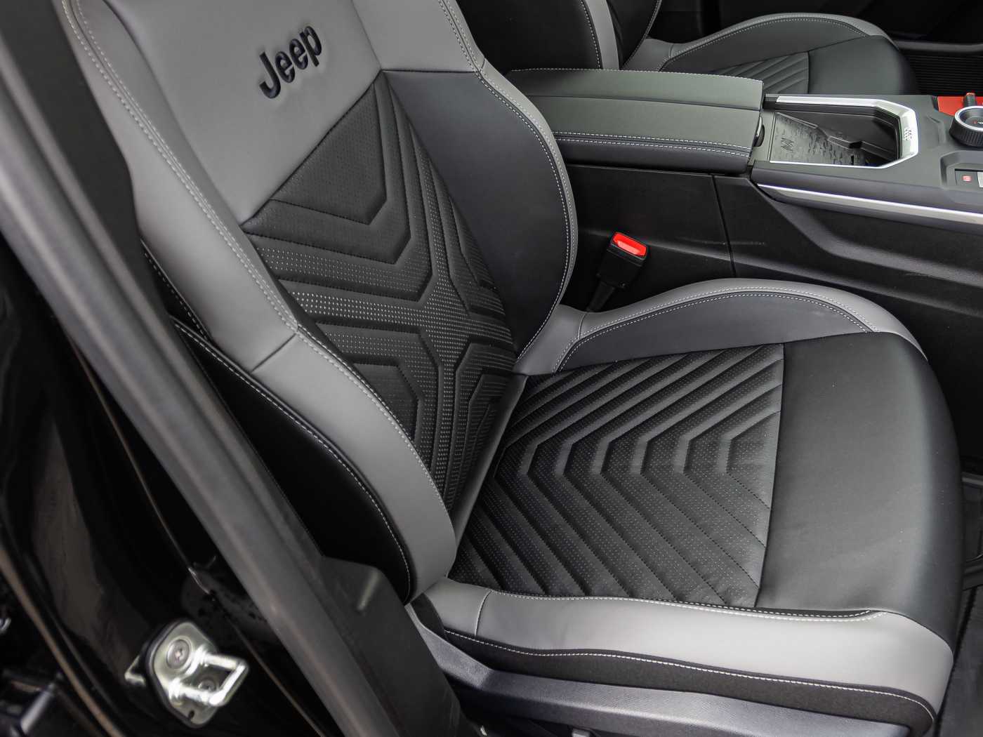 Vinyl-Sitze Grau & Schwarz, graue Naht, Jeep Logo