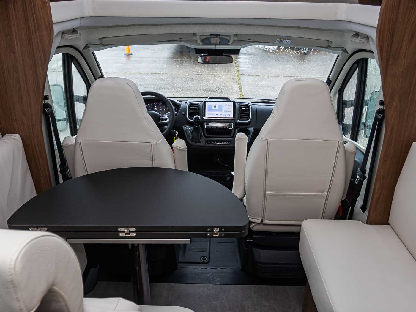 Polyurethan • GFK-Dach • LED-Heckscheinwerfer mit dynamischen Laufblinkern • Doppelboden, beheizt, beleuchtet mit Wärmespeicherfunktion, Beladung von außen und innen, Stauraum und technische Installationen • GFK-Unterboden • Garage mit tiefer Ladefläche, rutschfestem Bodenbelag, beleuchtet, beheizt und Zurrschiene mit variablen Ösen • Garage mit maximaler Nutzlast 250 kg • Steckdose in der Garage • Beidseitige Garagenklappen mit Gasdruckdämpfern und doppelter Schließanlage mit einheitlicher Steuerung • Sensor offene Garagenklappen • Coupé-Einstieg Elektrische Trittstufe • Sensor elektrische Trittstufe mit Bedienung vom Fahrerhaus • Einstiegshilfe • Premium XL-Aufbautür, mit Fernbedienung, Zentralverriegelung, Fenster, Verdunkelung, Ablagefach und Moskitonetz • Rahmenfenster mit Verdunkelung und Moskitonetz
