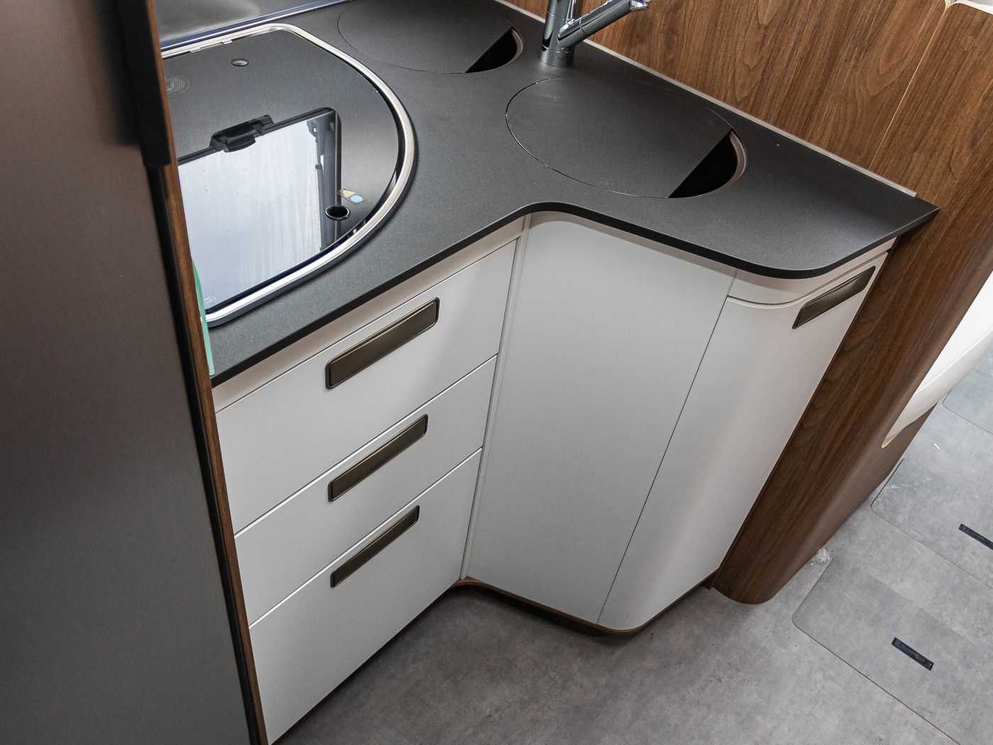 TECHNIK: • LED Beleuchtungskonzept • • Beheizter Doppelboden • Bord-Kontrollpanel mit Farb-Display • Automatisches Batterieladegerät 20 A • CI-BUS-Bordmanagementsystem • Gassystem mit Anti-Crash-Sensor • Frischwassertank innerhalb des Doppelbodens, beheizt, mit einfachem Zugang zur Kontrolle und Reinigung • Abwassertank innerhalb des Doppelbodens, beheizt mit einfachem Zugang zur Kontrolle und Reinigung