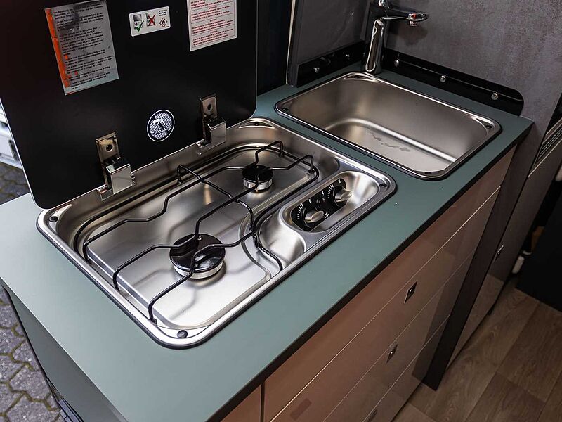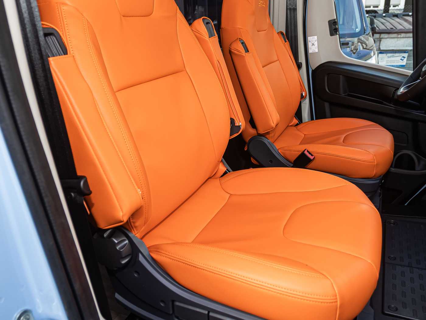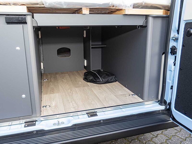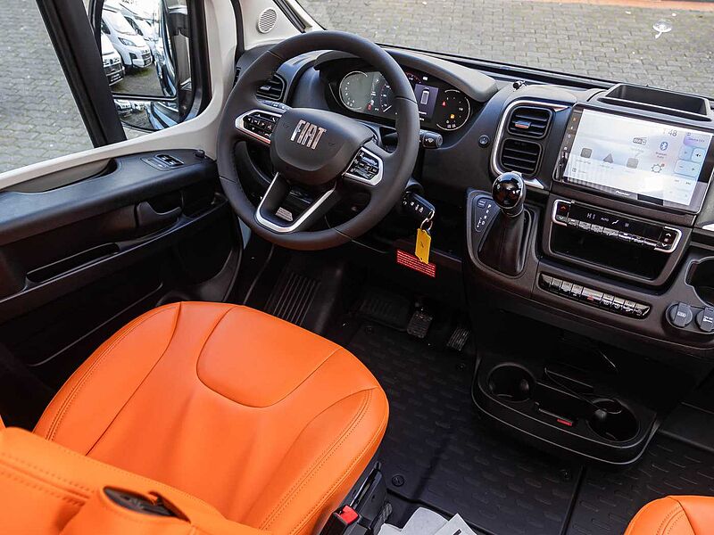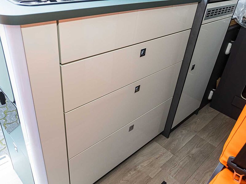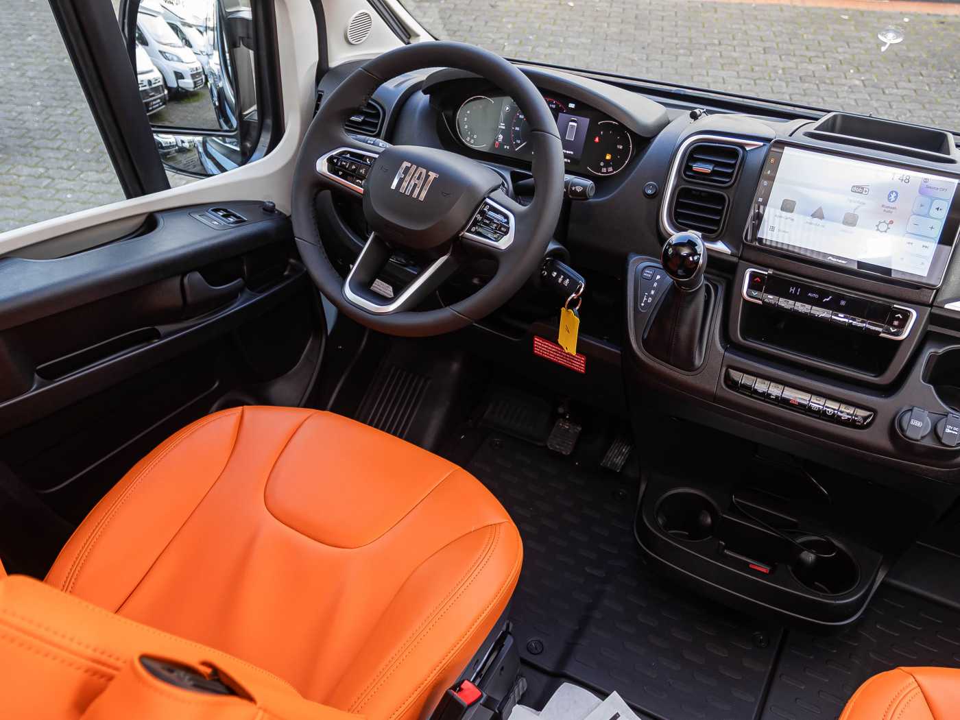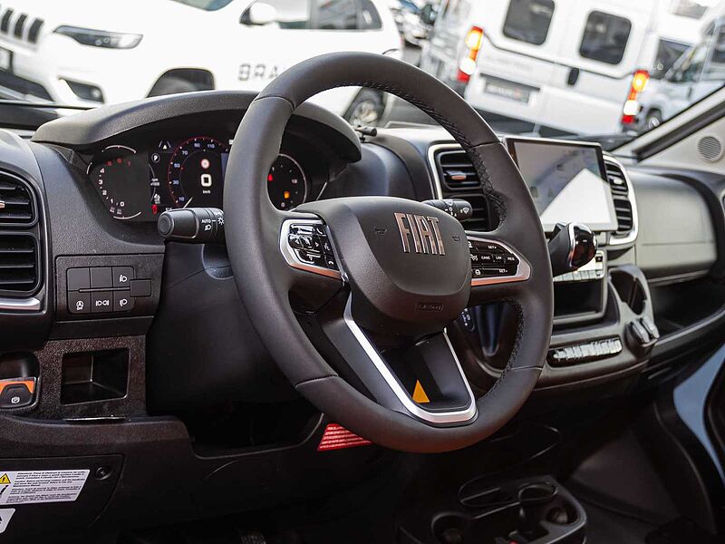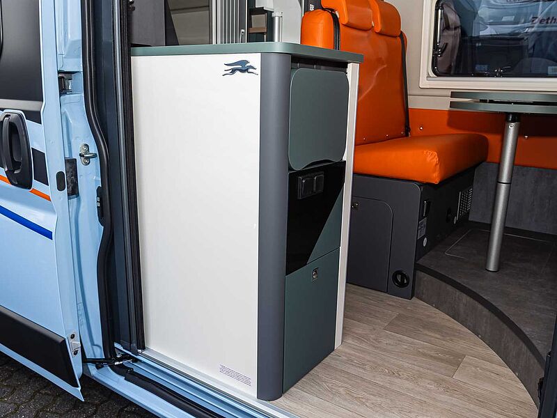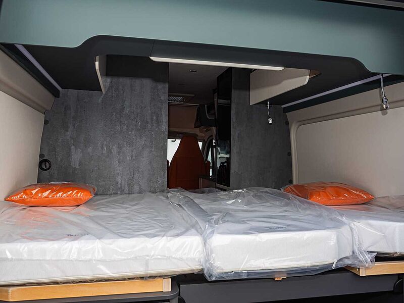 Serienausstattung: Chassis-/GewichtsvariantenFiat Ducato Light 3.500 kg 2.2 180 PS (Light Duty) + AutomatikgetriebeBasisReifenreparaturset Fix & Go60 l KraftstofftankElectronic Stability Control: ESC, ABS, ASR, Hill Holder, Roll Over Mitigation, Crosswind Assist, Trailer Stability Control System, Post Collision Braking SystemTempomatTraction+, Hill Descent ControlAußenspiegel elektrisch verstellbar u. beheizbar, mit integrierten BlinkleuchtenElektrische Fensterheber im FahrerhausFahrer- und BeifahrerairbagHöhenverstellbares LenkradLenkrad und Schaltknauf in EchtlederManuelle Klimaanlage im FahrerhausRadiobedienung am LenkradVorbereitung für DAB-Autoradio und Lautsprecher im FahrerhausAntenne DABEco-Pack mit Start&StopZentralverriegelung Fahrerhaus und WohnraumVorrichtung DieselheizungNebelscheinwerfer mit KurvenlichtInduktive Smartphone-LadestationDigitale Instrumentenanzeige mit 7 TFT-FarbdisplayTPMS (Reifendruckkontrollsystem)Elektrische FeststellbremseFull-LED-ScheinwerferAdaptive Geschwindigkeitsregelanlage (ACC) > 30km/hAutonomer Notbremsassistent mit Fußgänger- und Radfahrererkennung, Spurhalteassistent (Lane Support System), Regen- und Dämmerungssensor, Verkehrszeichenerkennung + FernlichterkennungKlimaautomatik mit PollenfilterChassis-Außenfarbe Mugello Grün18“ Racing-Leichtmetallräder (bronze)AufbauXPS, Boden und Dach, Wände und Dach isoliert mit Alu-EcofiberDoppelbodenstauraum mit Innenbeleuchtung (Sitzgruppe)Panorama-Dachluke 70 × 50 cm im WohnraumDachluke 40 × 40 cm im SchlafzimmerDachluke 28 x 28 cm im BadFenster im BadElektrische Trittstufe (Aufbautür)RahmenfensterAusbauDrehbare Fahrerhaussitze mit Armlehnen, höhenverstellbar, im Wohnraumstoff bezogenMaximierte Innenraumhöhe im Fahrerhaus und über WohnsitzgruppeStaufächer und indirekte Beleuchtung in der T-HaubeKopfstützen Sitzgruppe mit HöhenregulierungGarderobenschrank mit AuszugsschieneOptimierter Möbelbau für Anti-Kondensations-Effekt, Luft- und Wärmezirkulation sowie optimale Wärmeverteilung in Wohn- und SchlafraumWohnraumdecke gepolstert und verkleidetISOFIX (2 Sitzplätze)Ausziehbarer TischHeckstauraum mit vier VerzurrösenHerausnehmbare Trennwand zwischen Wohn- und Laderaum mit Tür für InnenzugangVerdunklungsplissee Fahrerhaus für Front- und SeitenscheibenSchiebetür mit FliegengitterWohn- und Schlafraum & BeleuchtungBetten mit HolzlattenrostVerstellbare Leselampen mit USB-SteckdosenLED BeleuchtungskonzeptKlappbare Heckbetten zur einfachen Beladung von sperrigem GepäckKomfortable "Ergonomy"-Matratzen, Anti-Milben, mit atmungsaktivem Stretch-Futter, waschmaschinenfestIndirekte Beleuchtung, dimmbarSchlafzimmerwände mit Eco-Leder-VerkleidungKücheKüchenoberfläche und Tisch, kratzfest und pflegeleicht (Fenix®)2-Flammen-Kochfeld und Spülbecken aus EdelstahlKompressor-Kühlschrank 84 lKüchenschubladen softclose230 V Steckdose in der KücheIndirekte Beleuchtung unter der KüchenplatteKlappbares Regal in der KücheBadezimmerVariobad mit integrierter abtrennbarer Maxi-DuscheToilette und herausnehmbarer Tank (frostbeständig)Schiebetür zum BadDuscheinlage aus HolzInstallation & TechnikDieselheizung Combi 6 - 6kWHeizung mit digitalem Bedienpanel und ZeitsteuerungAutomatisches Batterieladegerät 22 ABord-Kontrollpanel mit LED-AnzeigeWohnraumbatterie (95 Ah)Stromversorgung und Aufladen mobiler Geräte über USB-SteckerSteckdose in der GarageStauraum für 2 GasflaschenFrischwassertank innenliegend, leicht zugänglich, elektrische TauchpumpeAbwassertank mit SicherheitsventilAbflussrohre mit Siphon und Abwassertank mit externer Entlüftung, gegen GeruchsbildungBeheizter AbwassertankVorbereitung RückfahrkameraLED-Außenleuchte und Raintech-System über SchiebetürAbwassertank, isoliertMultimediaTV-Fach im Wohnraum mit Halbinsel und indirekter BeleuchtungTV-Vorbereitung (Strom- und SAT-Kabel)