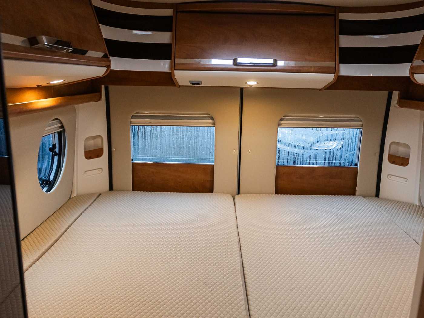 - Aufbau-Paket: Dachinnenverkleidung mit Mikrofaser-Klimabelag, Deckenbaldachin Wohnraum mit indirekter LED-Ambientebeleuchtung, Upgrade Küchencenter, Heckbettmatratzen in 7-Zonen-Qualität, Truma CP Plus digitales Bedienpanel, Verzurrsystem Gepäckraum, Abwassertank in Gehäuse eingefasst und isoliert