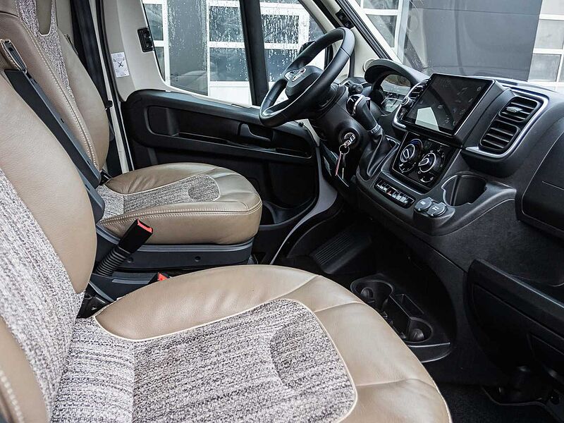 - Chassis-Paket: Einparkhilfe mit Sensoren im Heck, Kraftstofftank 90 Liter, Ladebooster, Fahrerhausverdunklungssystem an Front- und Seitenscheiben, Armaturenbrettveredelung: Lüftungsgitter in Chrom, Beifahrersitz höhenverstellbar, Pilotensitze in Wohnraumstoff bezogen inkl. gepolsterten Armlehnen, Fliegenschutzgitter hinter Schiebetür, Außenspiegel, elektrisch verstell- und beheizbar