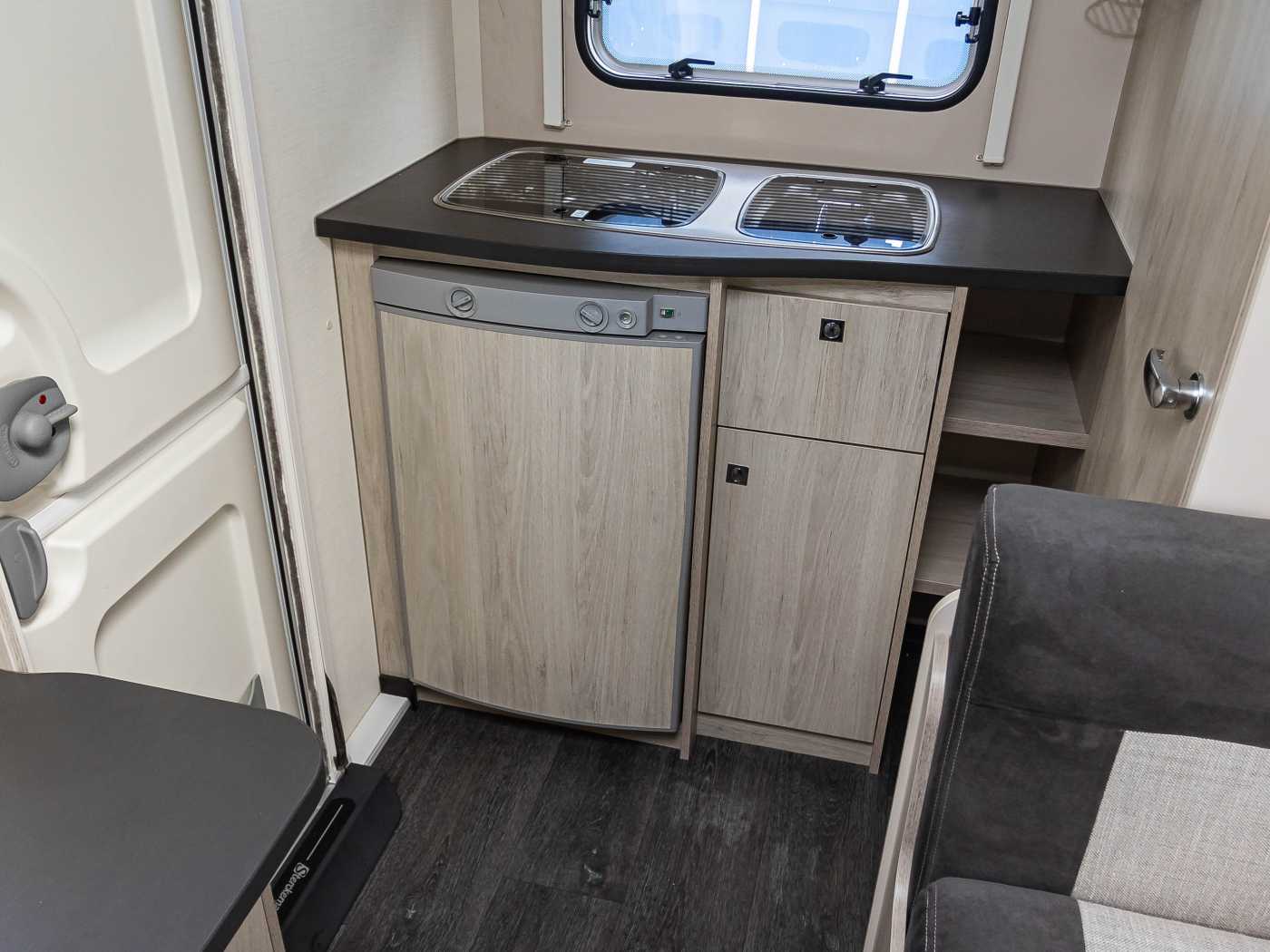 Edelstahl-Spülbecken und 3Flammenkocher Frischwassertank 50L LED-Beleuchtung Gewürzbord Kühlschrank 85L