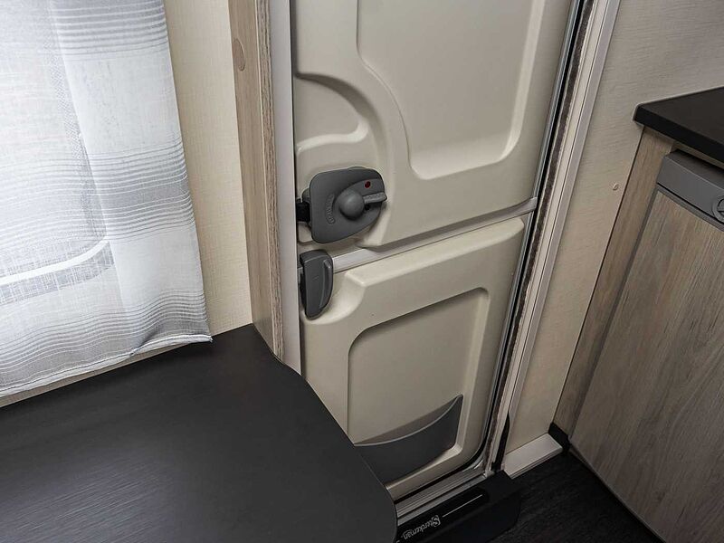 Stoßdämpfer AKS - Schlingerkupplung 3004 Kurbelstutzen Verlängerte Vorne Radkappen Vorzeltleuchte 3te Bremsleuchte ABS-Kunststoff-Heckleuchtenträger Ausstellfenster : 4 Bugfenster ABS Gasflaschenkasten Ersatzradhalterung im Gaskasten Serviceklappe ( 75x30 cm ) Exklusive IRP-Technology